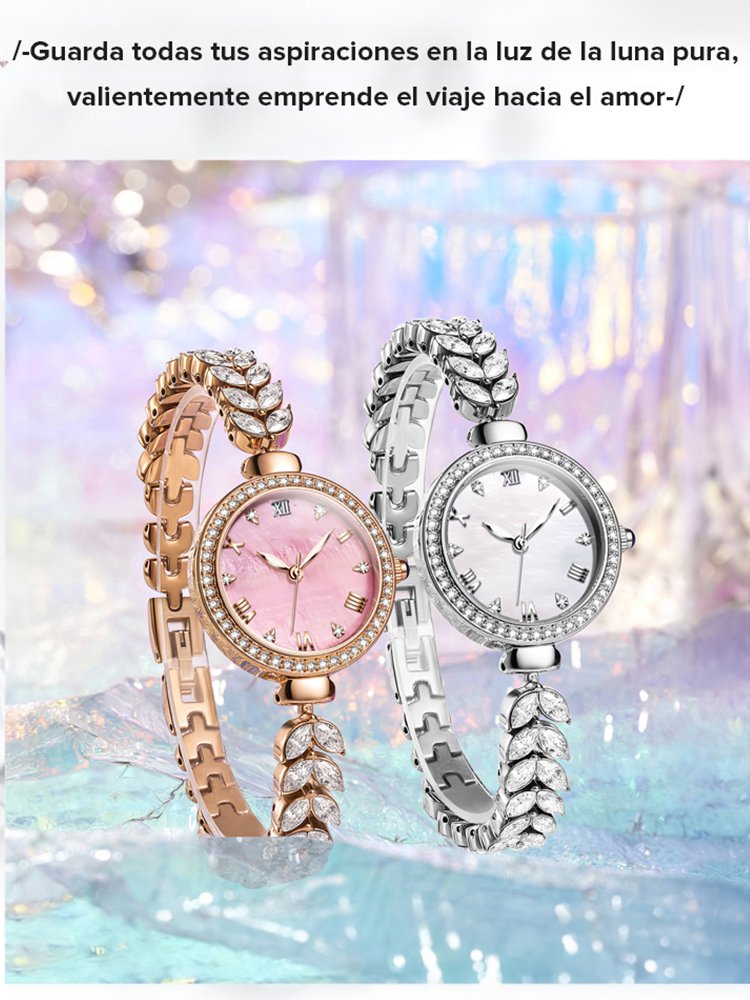 Reloj de lujo incrustado con diamantes que brilla intensamente
